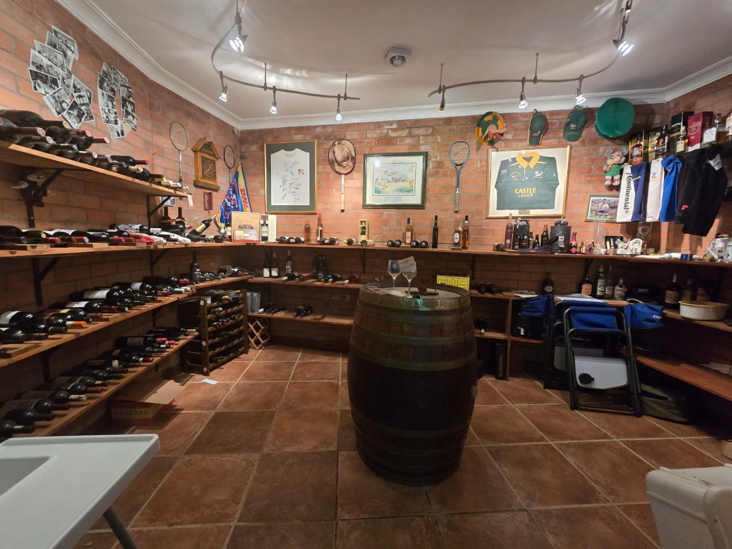 Ascending to the top floor, two additional bedrooms with en-suite bathrooms provide a comfortable retreat for family or guests. Meanwhile, the ground level offers exceptional practicality, featuring a spacious garage accommodating up to four vehicles, an additional double garage, a wine cellar, and a fully equipped workroom.