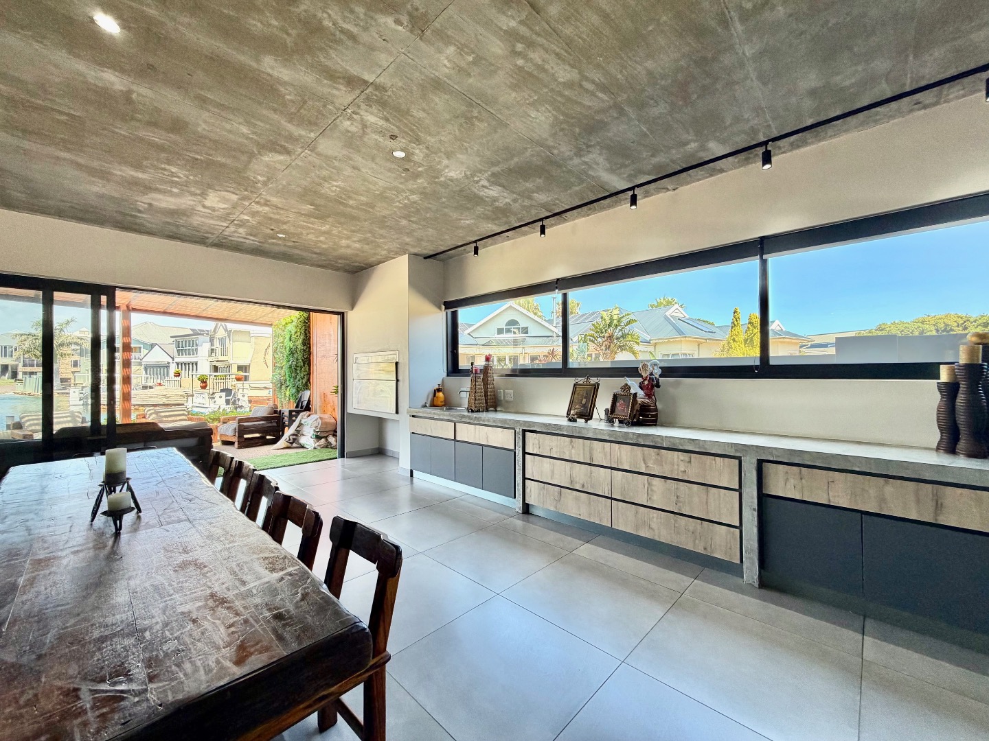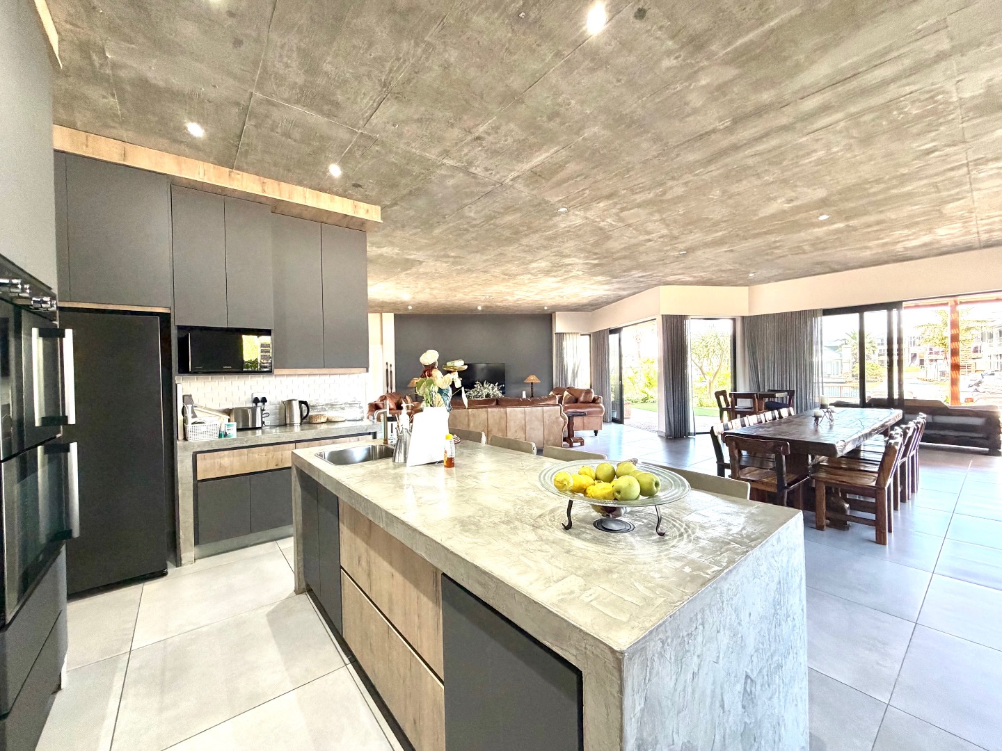 * Modern Open-Plan Design with Concrete Ceilings